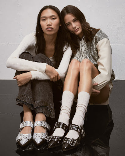 GRAND AVE, Las balerinas que tienen una silueta angulosa con la parte trasera cuadrada y la puntera recortada. Con ojales gruesos y las hebillas de gran tamaño aportan un toque vanguardista, sin olvidar las tiras anchas de la parte superior y la puntera de este diseño, crearás looks intrépidos y sofisticados que destaquen del resto.