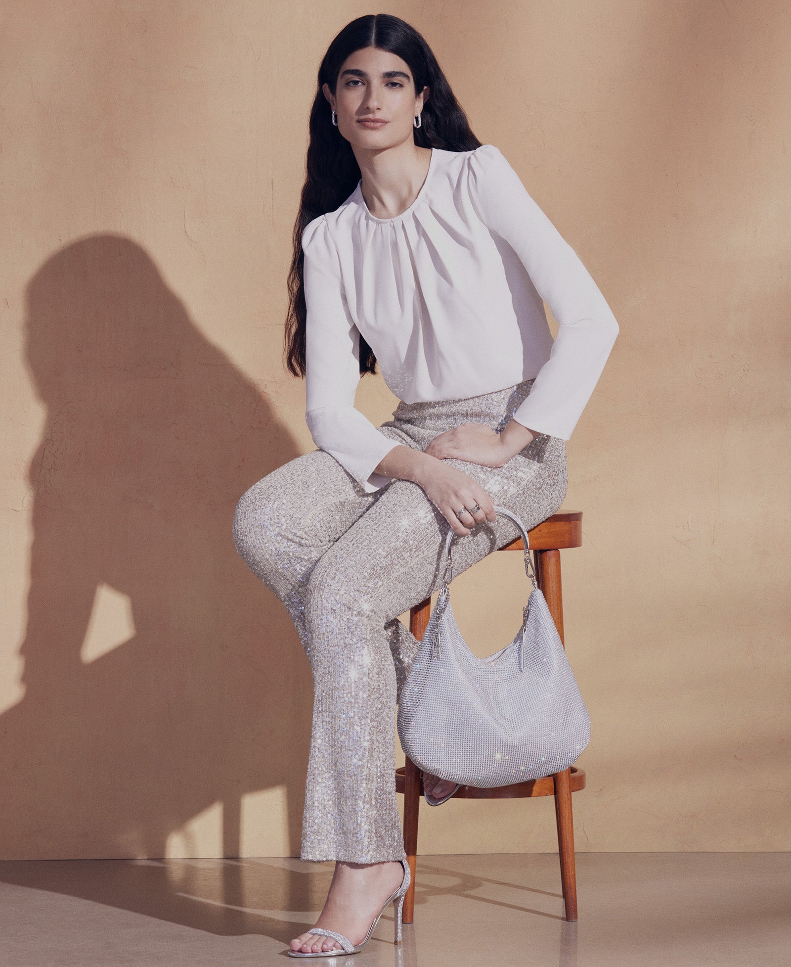 2 correas delgadas aseguran la sandalia TECY a su tacón de aguja para una versión minimalista de la clásica sandalia de tacón alto con tiras. Esta versión súper brillante presenta las correas y el talón con mini pedrería para una actualización deslumbrante.