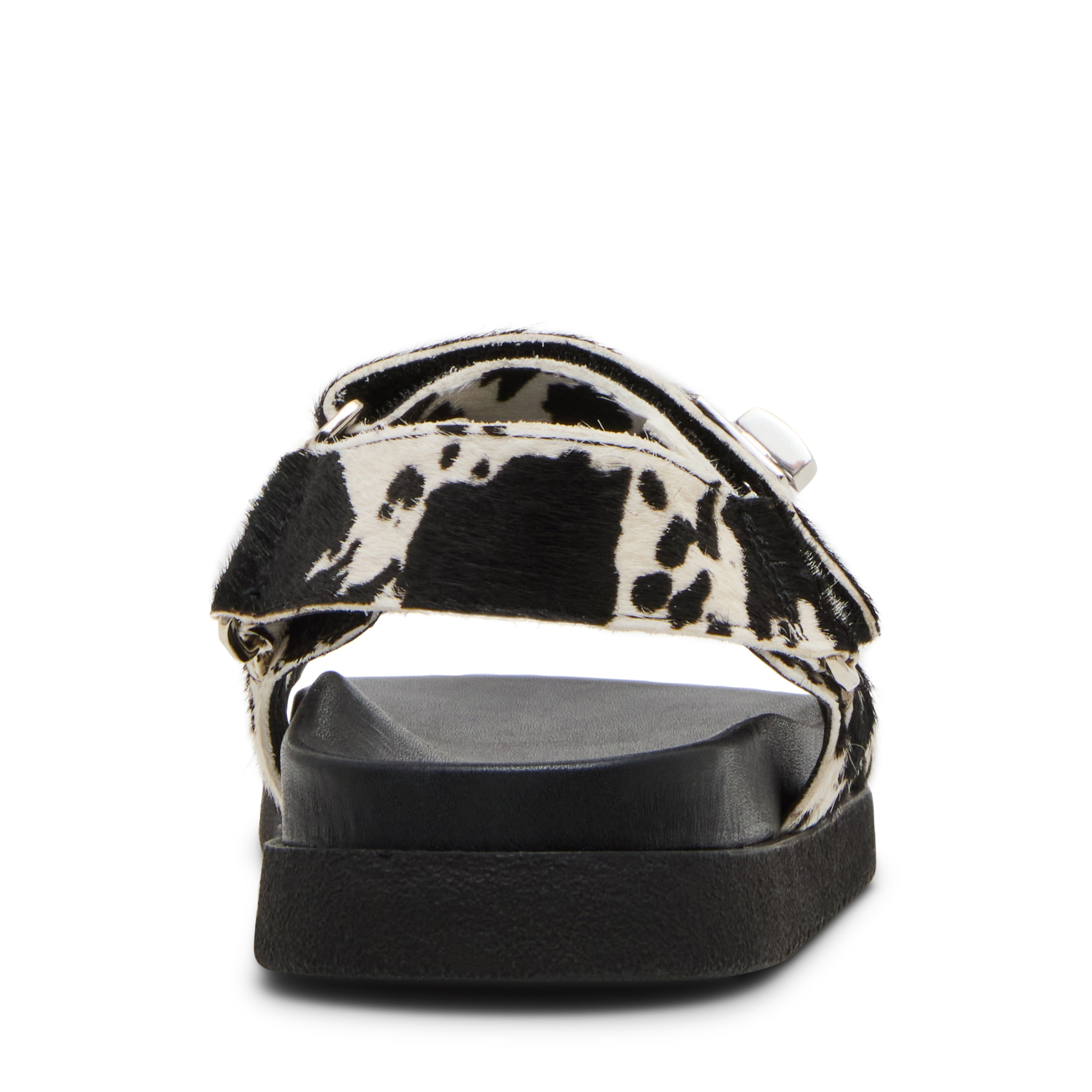 La MONA reinventa el diseño clásico de sandalia de tres correas con plantilla anatómica y suela plana, elevándolo gracias a su construcción duradera y a los llamativos herrajes en tono plateado.